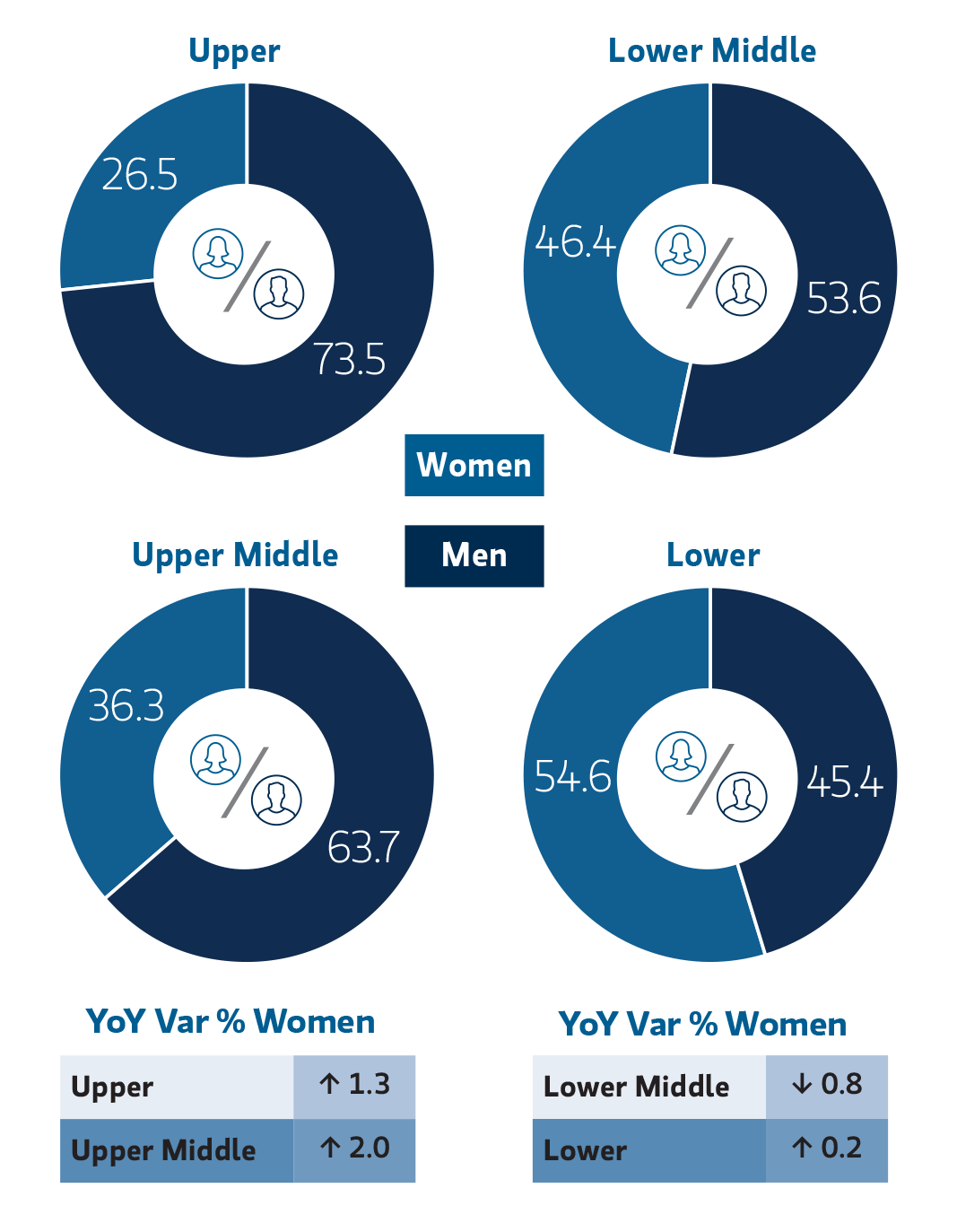 Fairness in our pay practices is central to our compensation strategy. Underlying our results is a greater proportion of men than women in senior positions and in businesses with the highest market rates of pay. We persist in our commitment to reduce our Gender Pay Gap, and are confident that our focus on retention, advancement and succession planning will help us address this.