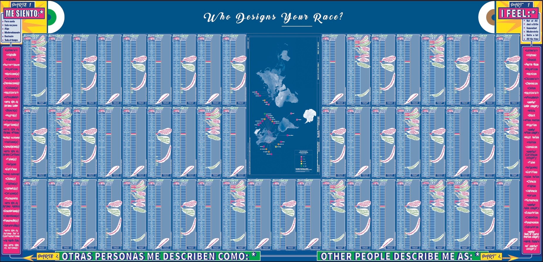 Collective Magpie, who began their public art practice in 2008, created an interactive project that subverts the official language of the U.S. and Mexican censuses. The artists also highlight how racial categories are constructed, rather than inherent, by asking participants when and how they feel race in their daily lives.