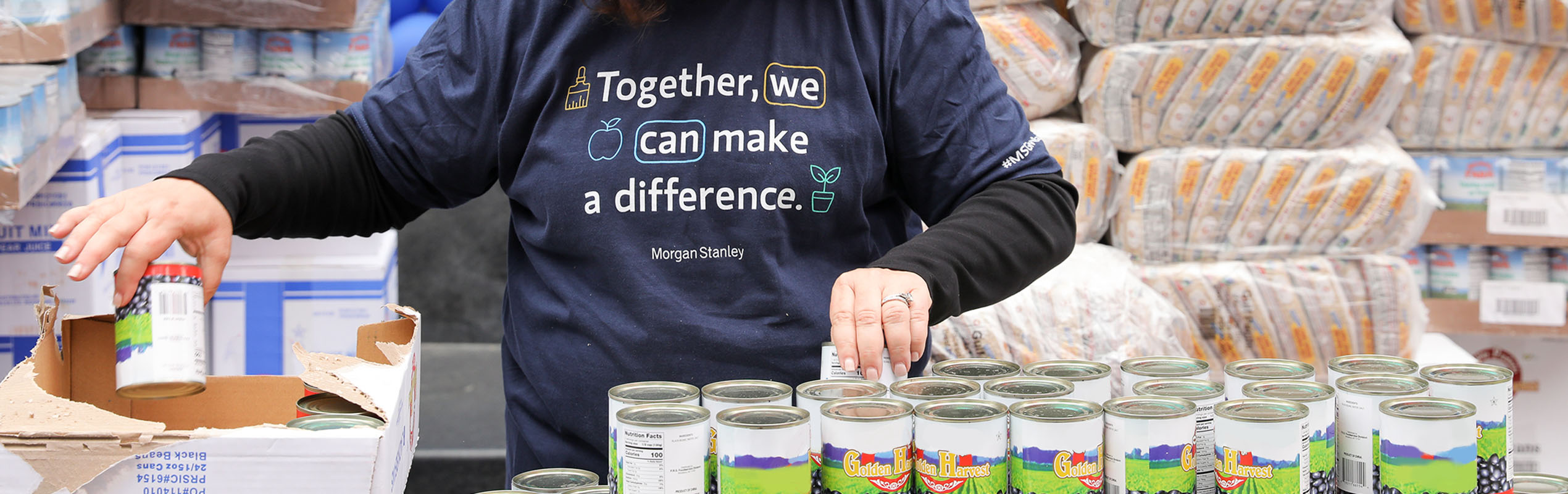 Since the beginning of Morgan Stanley’s relationship with Feeding America in 2009, our funding has totaled more than $50 million, helping to deliver more than 356 million meals8 to children and families. And our support goes beyond dollars: Morgan Stanley employees have volunteered more than 130,000 hours for Feeding America food banks in communities across the country, lending a hand to the movement to end hunger.