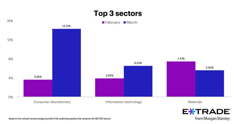 E*TRADE from Morgan Stanley today released the data from its monthly sector rotation study, based on the E*TRADE customer notional net percentage buy/sell behavior for stocks that comprise the S&P 500 sectors.